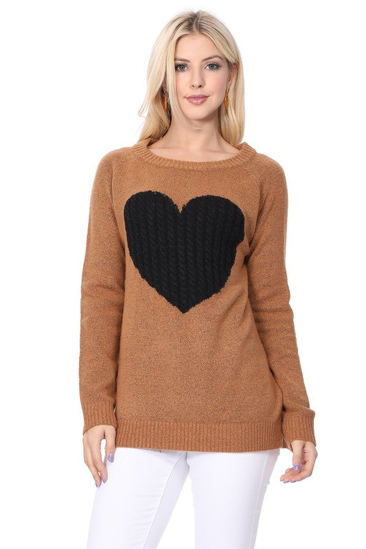Cozy Heart Jacquard Round Neck Pullover Sweater