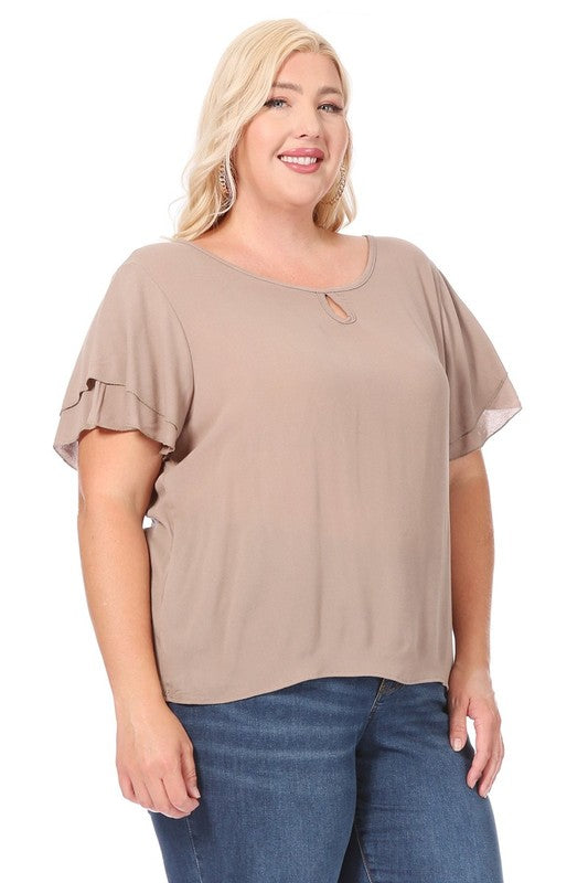 Plus Size Short Flutter Sleeve Keyhole Blouse