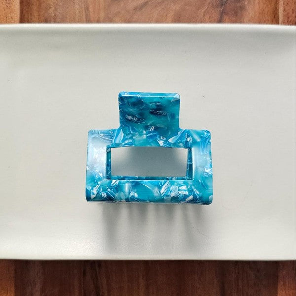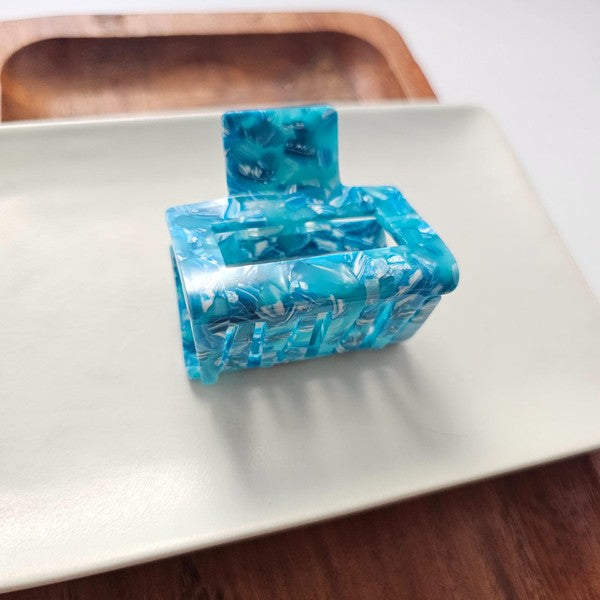 Plant-based acetate acrylic hair claw with a clear protective cover over the spring.