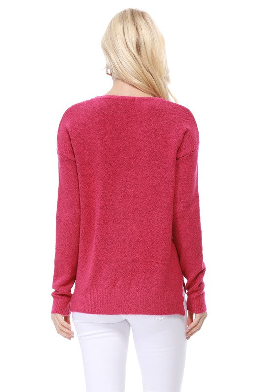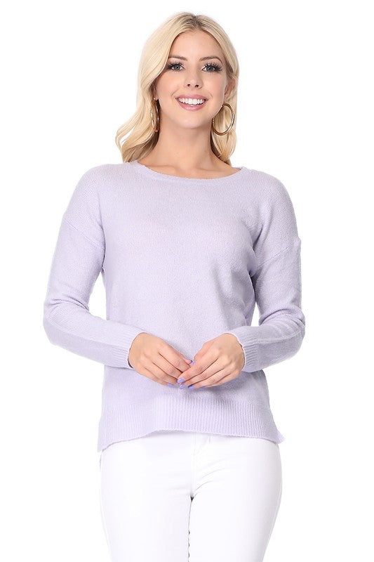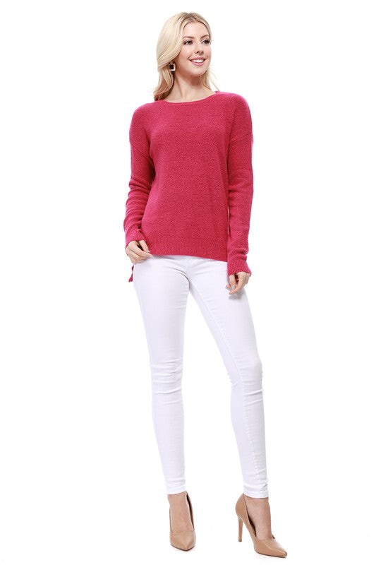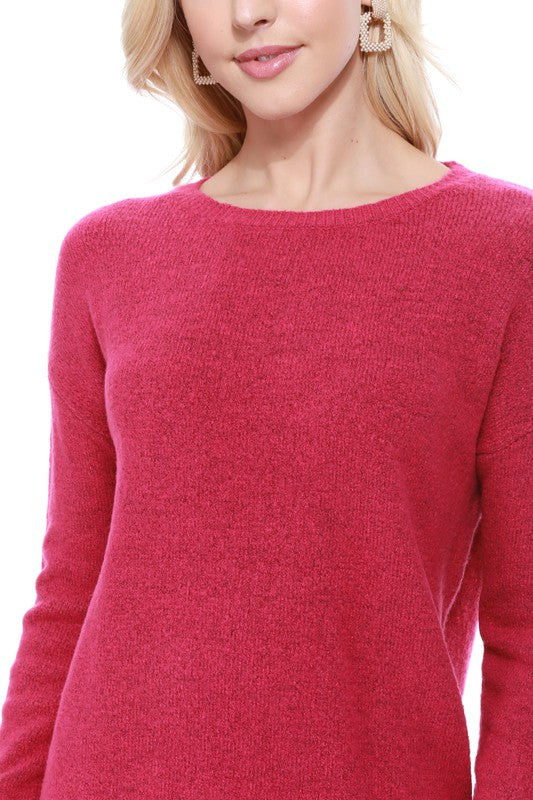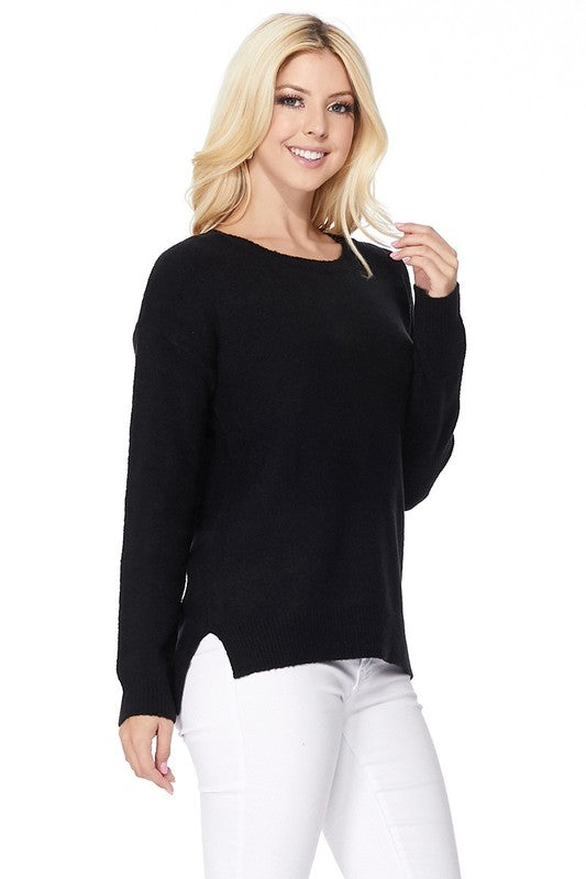 Crew-neck Knit Pullover Sweater with Side Slit