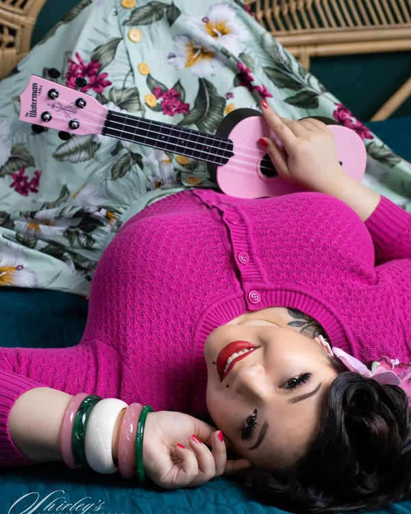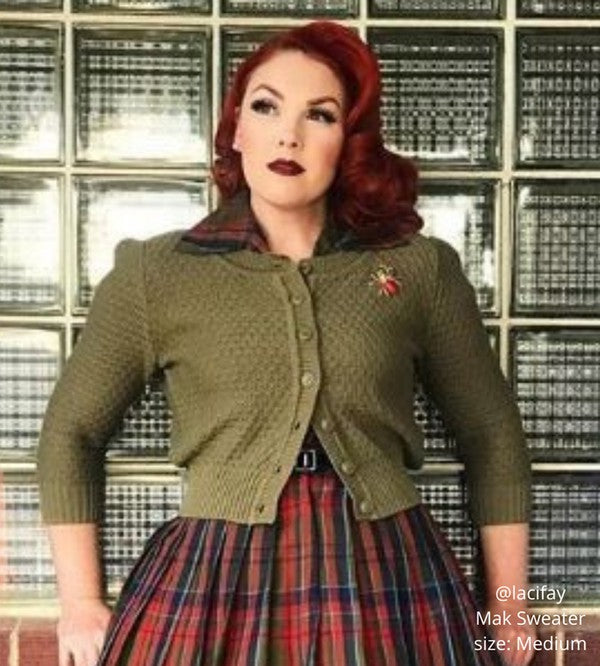 - 21.5"-22.5" Crop Length, 3/4 Sleeves, Round Neck Knit Cardigan Sweater with Adorable Vintage Buttons