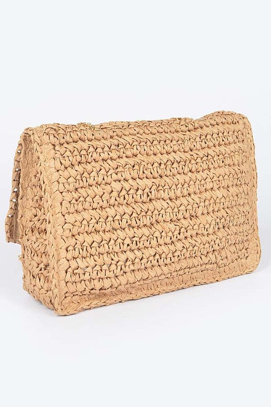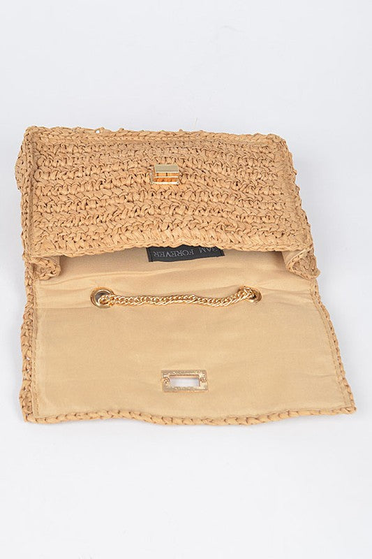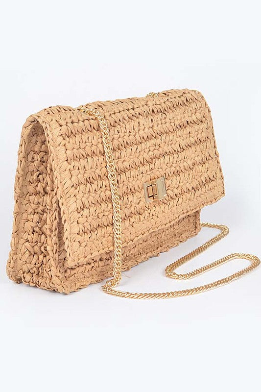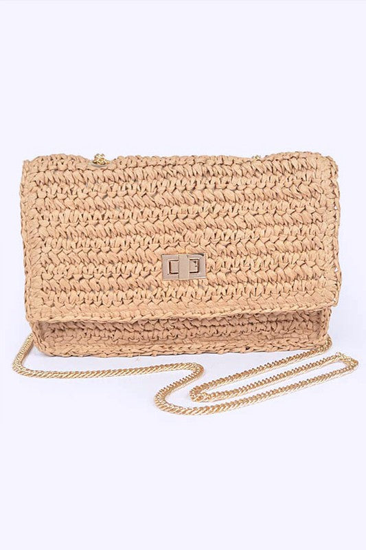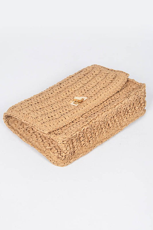 Faux Straw Turn Lock Shoulder Bag