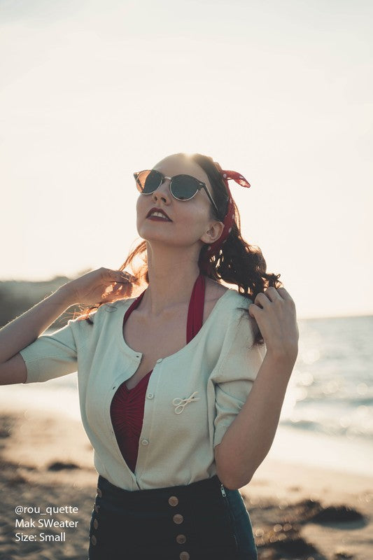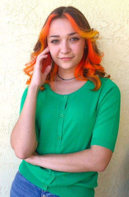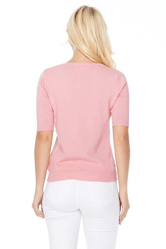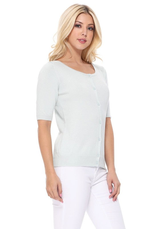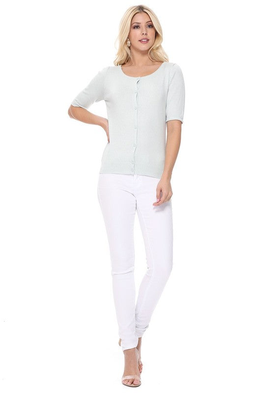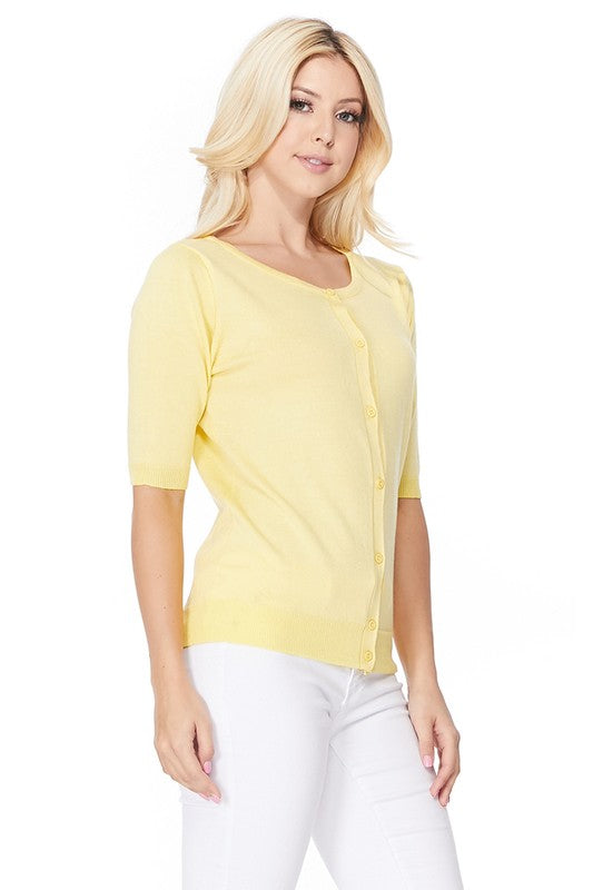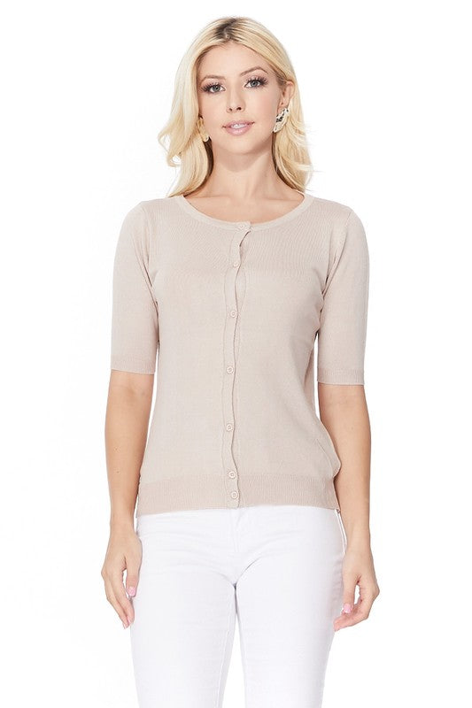 - 22.5"-23.5" Length, 1/2 Sleeve, Round Neck, Button Down Knit Cardigan Sweater Top