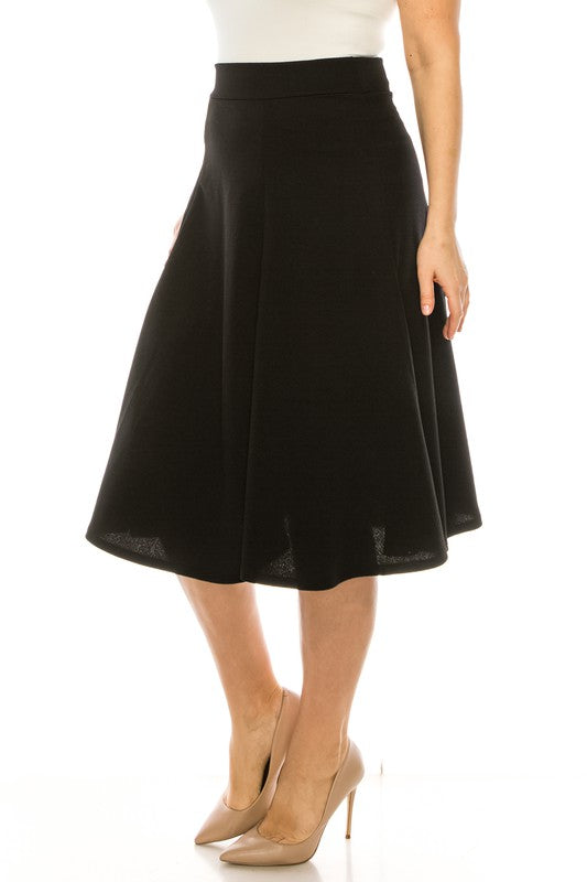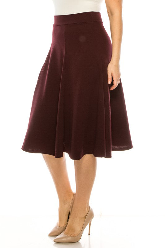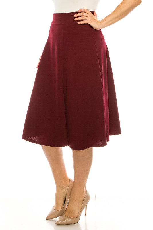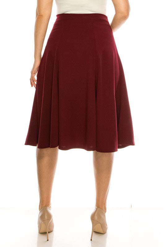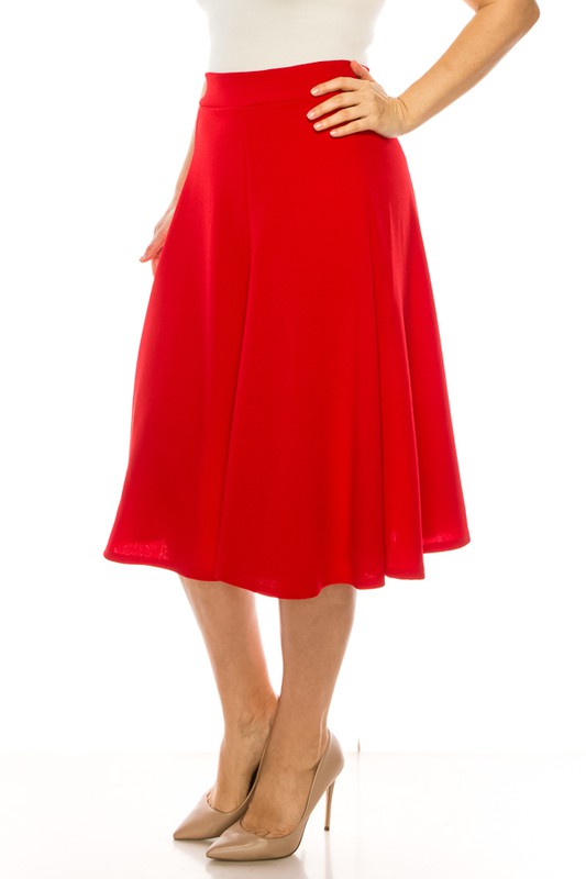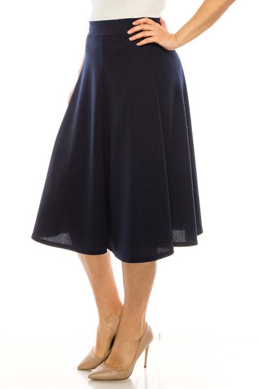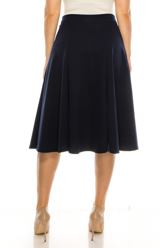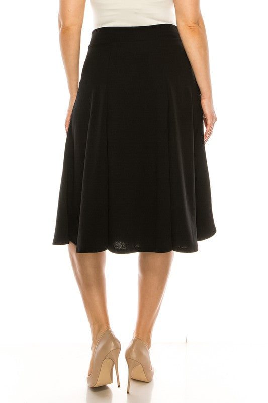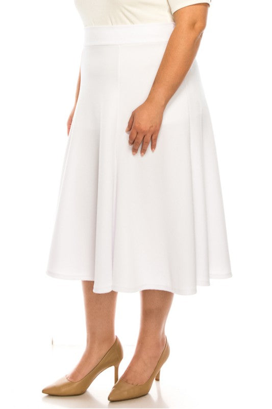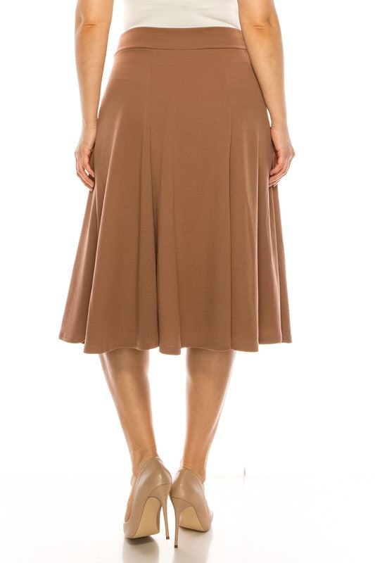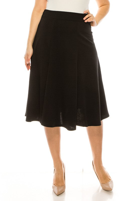 MOA Collection Plus Size Paneled A-Line Midi Skirt with Banded Waist