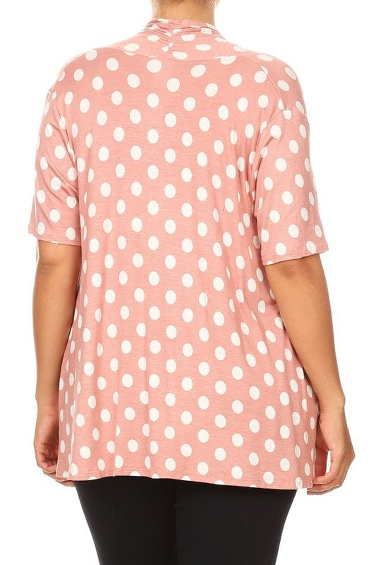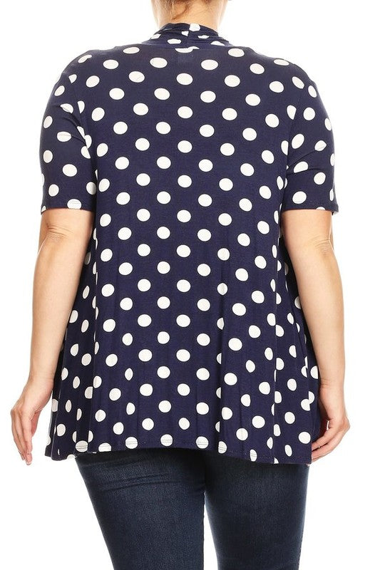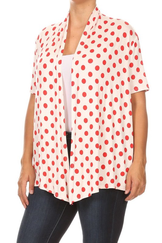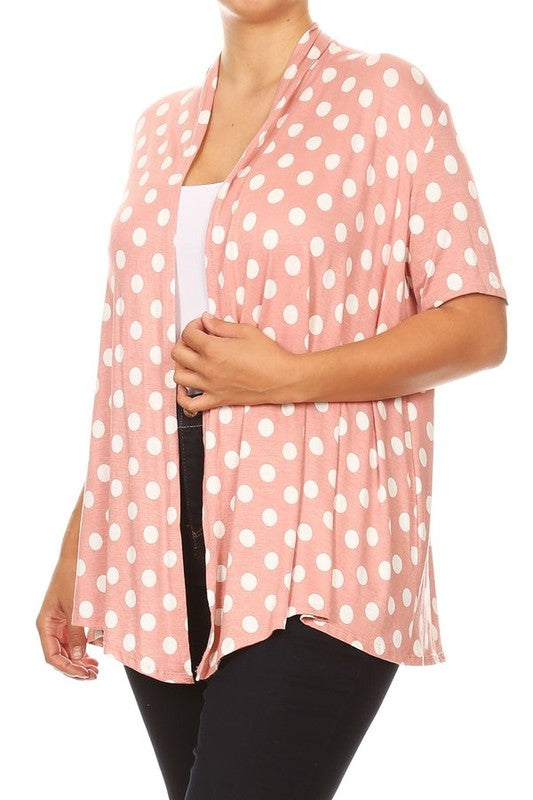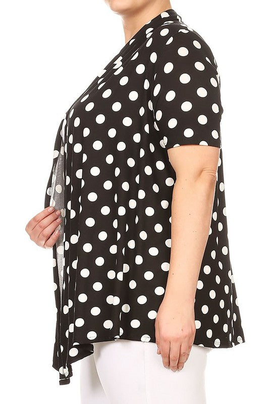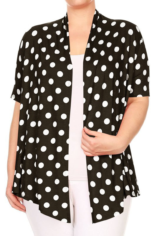 Polka dot Cardigan - Loose Fit, Open Front, Short Sleeves