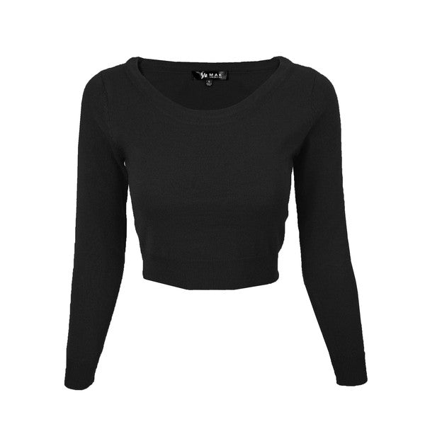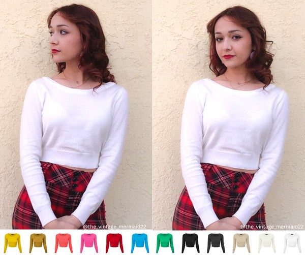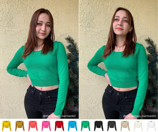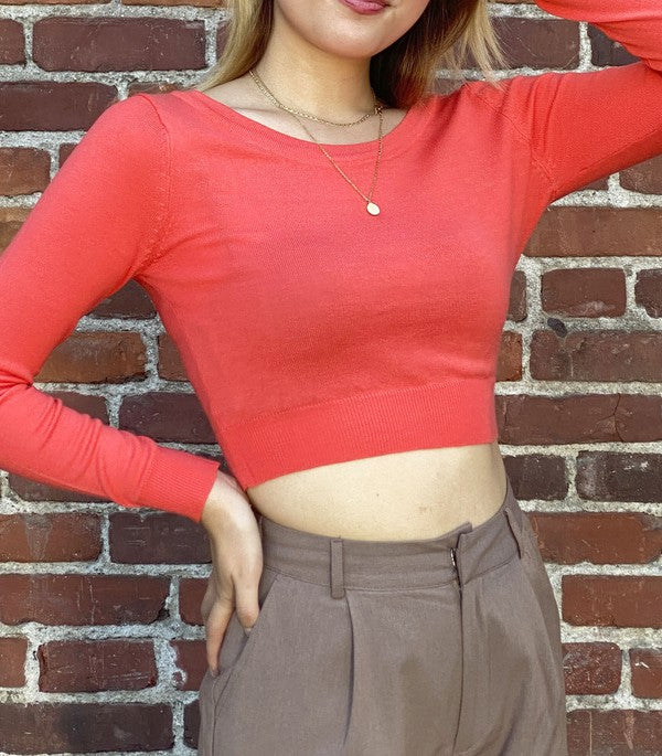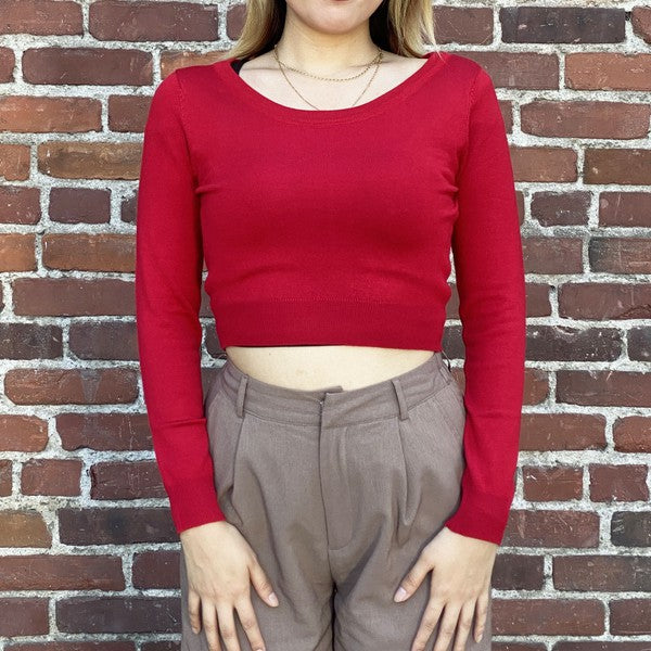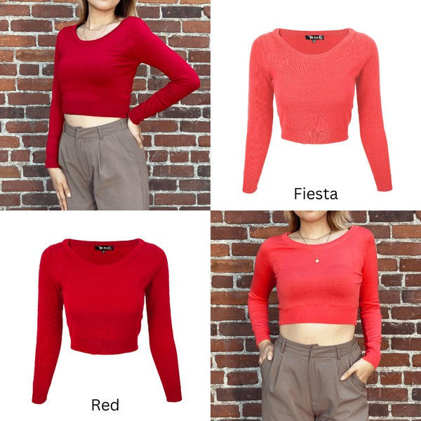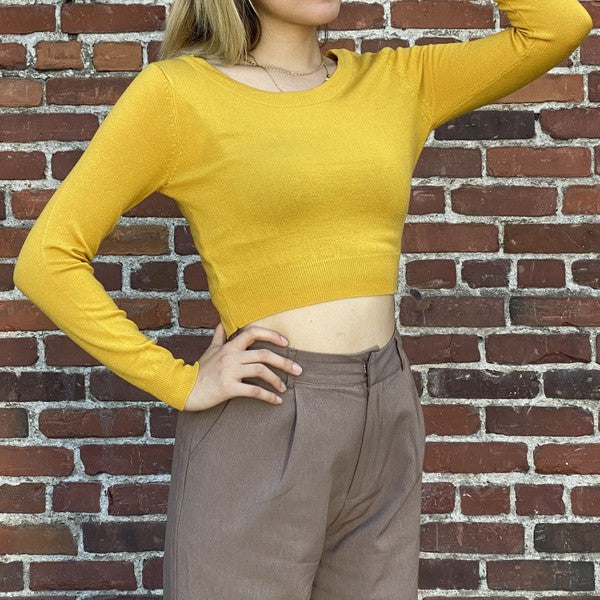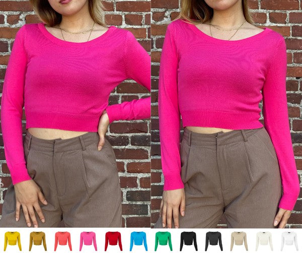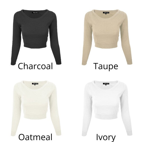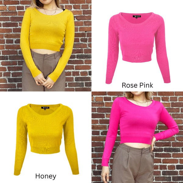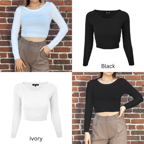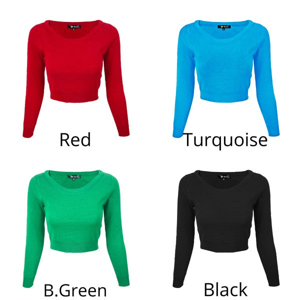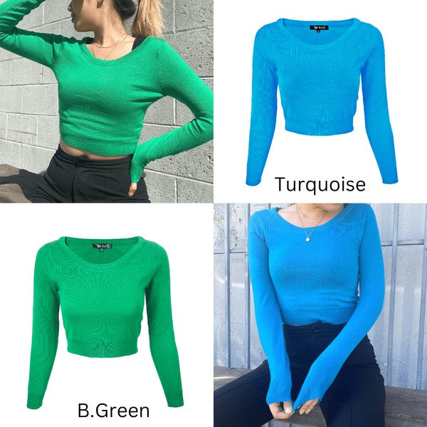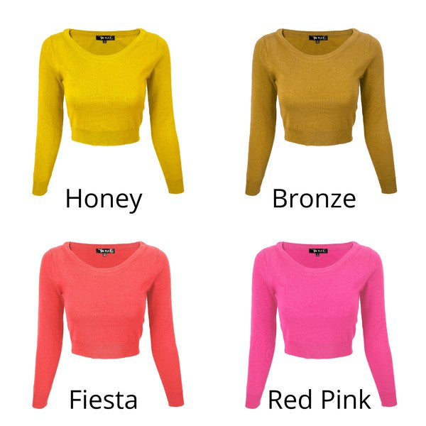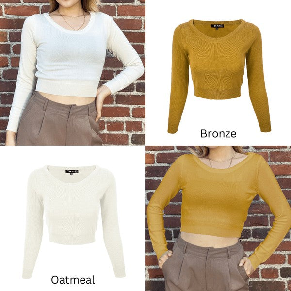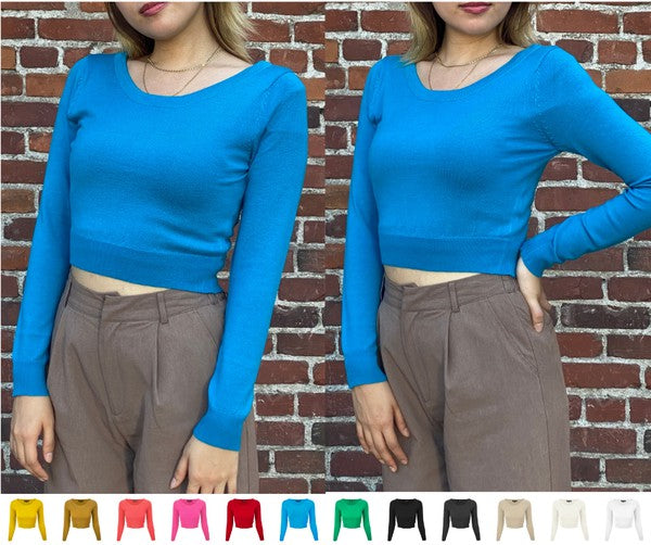 Round Neck Long Slv Crop Sweater Knit Crop Top