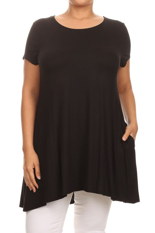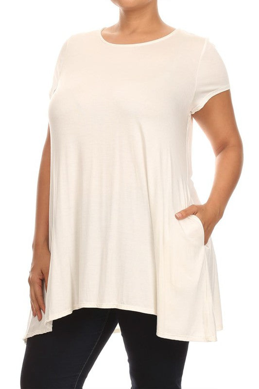 MOA Short Sleeve Tunic Top with Side Pockets - Loose Fit Solid
