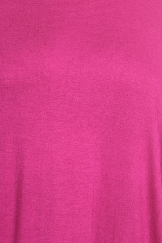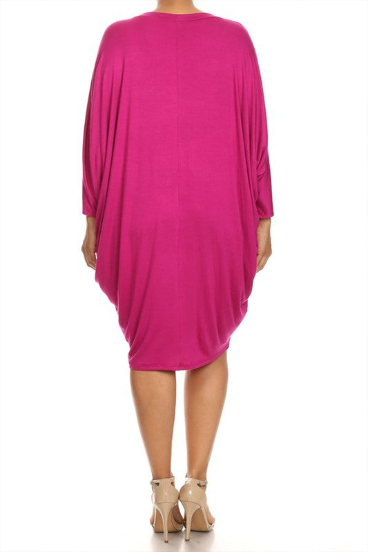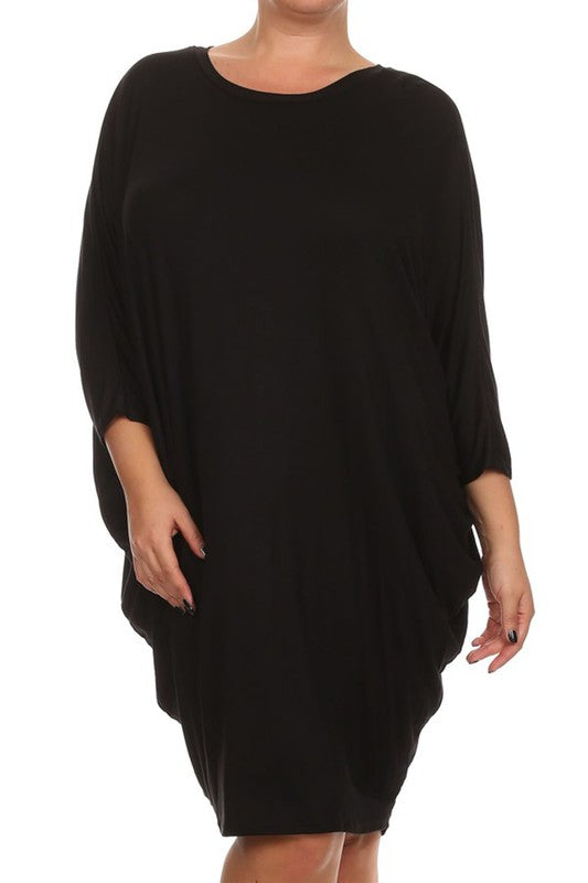 MOA Solid 3/4 Sleeve Midi Dress with Round Neckline