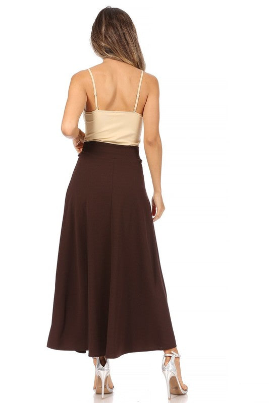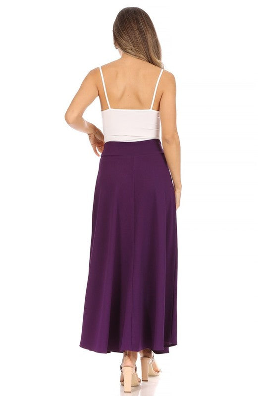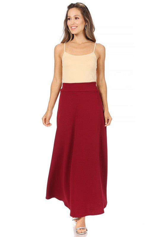 Solid High Waisted A-Line Midi Skirt - Elegant and Comfortable with Elastic Waist