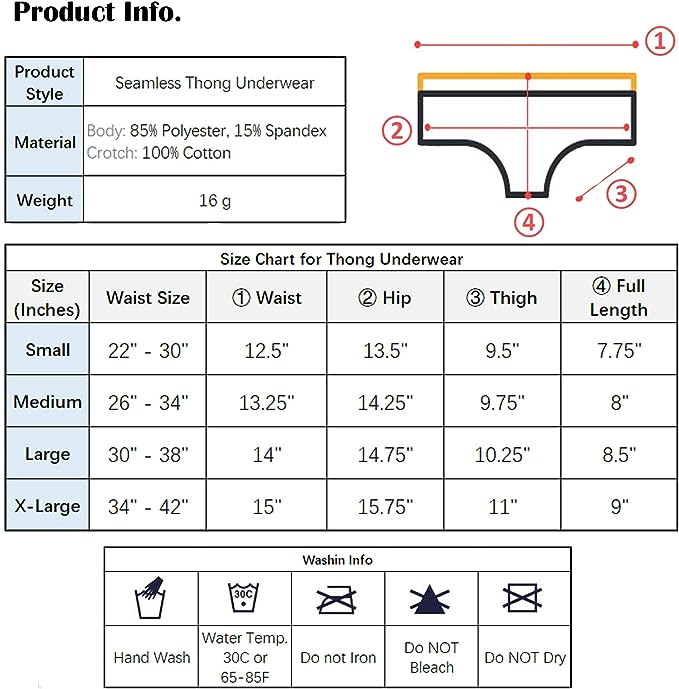 Size Chart & Garment Spec (Measurement of Underwear) on the Product Picture.