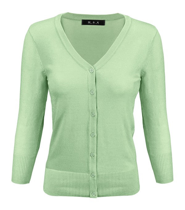 - 24.5"-25.5" Length, 3/4 Sleeves, Button Down, Basic, Casual, Daily, V-Neck Knit Cardigan Sweater. - Various Vivid Color Choices with Sizes: Small, Medium, Large, 1X (Plus), 2X (Plus), 3X (Plus). - High Quality Spandex Knit Cardigan Top Fits Well For Any Occasion . - Matches Well with Swing Skirts, Vintage Style Skirts, Dresses, and Pants. - Retro and Perfect Cardigan Sweater for Vintage Inspired Fashion Lovers! -We have a few colors in 2/1/2 packs.